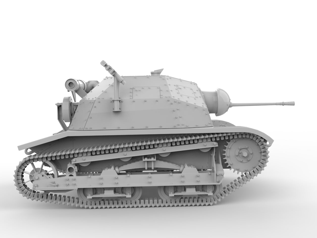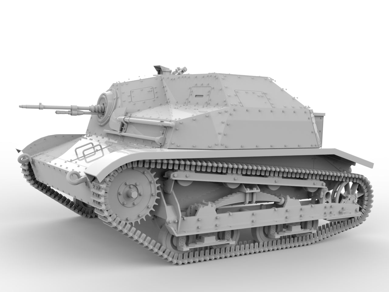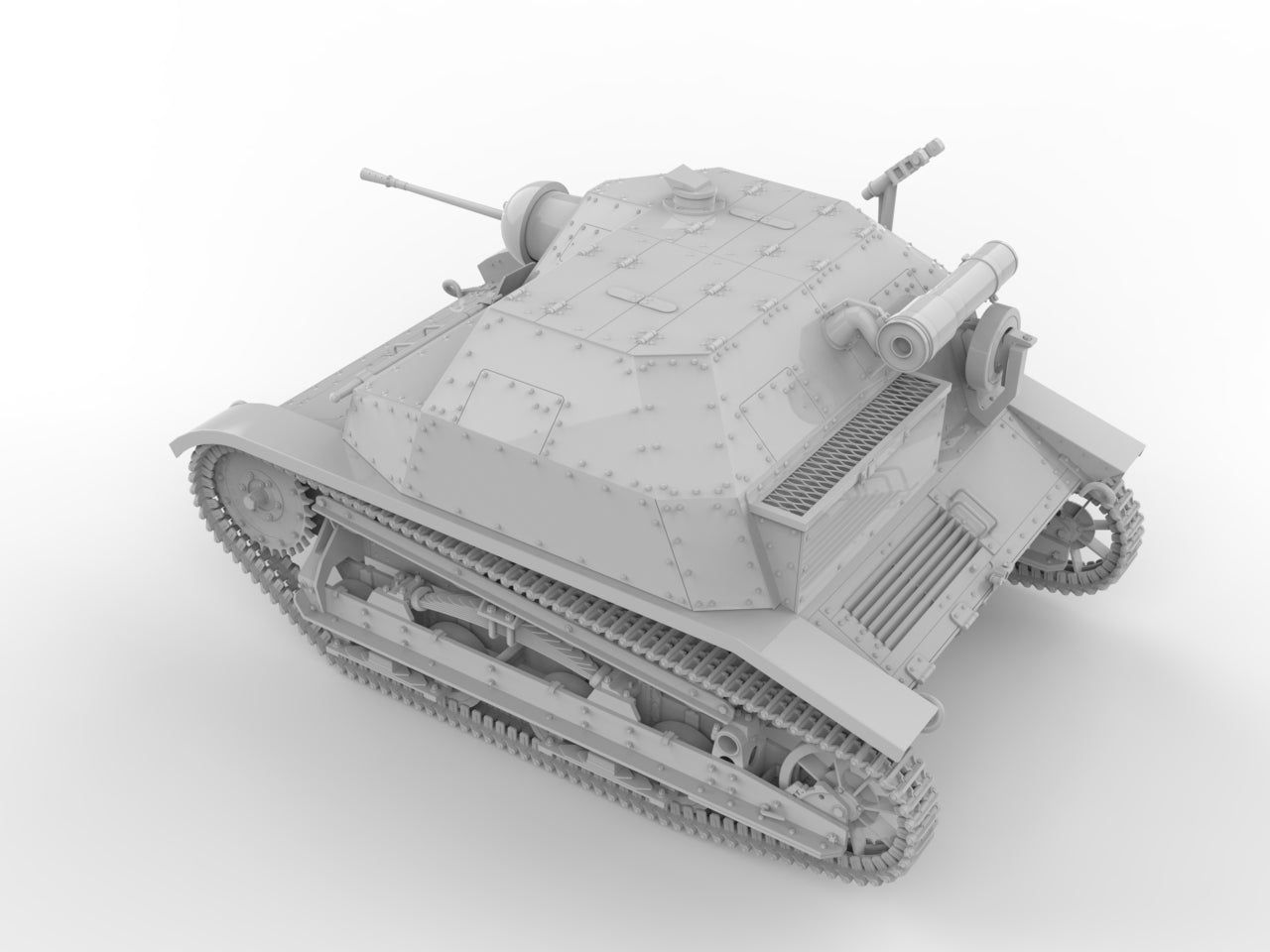 Buy both and save. The combo pack includes files for both the MG and Solothurn 20mm versions of the TKS. The completed model comes in at over 6" long. Two part hull design allows for printing supports to be placed on mating surfaces, so no detail needs to be removed during the cleanup process. Single piece track runs allow you to print the most tedious part of tank modeling in a single step.